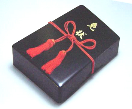Ceremonial Goods Wedding, Engagement, Funeral, Award Ceremony, Graduation and other occasions. Lacquer coated ceremonial trays with Kamon (a family crest) are a necessity to conduct all ceremonies. Until the Meiji era (1869), only people in Samurai-class and the Royal family were allowed to own Kamon. Among over eight thousands different Kamon commonly used, certain Kamon are a symbol of a specific family. The 16-petal chrysanthemum is known as the Imperial symbol. The mallow tree leaves is well known as the Tokugawa-Shogunate symbol.
